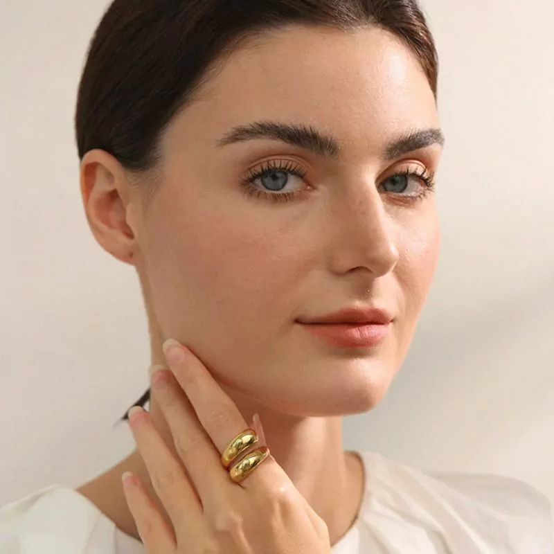O Anel Brume traduz elegância contemporânea em design minimalista e escultural. Sua forma fluida em espiral abraça o dedo com sofisticação arquitetônica, criando um equilíbrio perfeito entre ousadia e refinamento. O acabamento polido espelhado reflete luz de forma hipnotizante, conferindo presença marcante e atemporal.