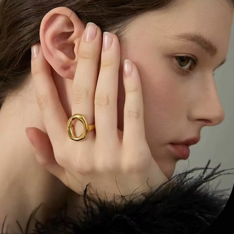 O Anel Contornos Dourado é uma peça que se destaca pelo seu design fluido e escultural. Suas curvas suaves criam um jogo de luz e sombra que transmite dinamismo e sofisticação. Banhado a ouro 18K, esse anel une durabilidade com um acabamento luxuoso, sendo ideal para quem valoriza acessórios com personalidade e elegância atemporal.