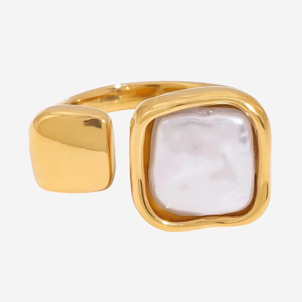 O Anel Dourado Assimétrico com Pérola é mais que uma joia: é um convite ao encantamento, uma expressão de personalidade e sofisticação eternizada em aço inoxidável de excelência. No centro, uma pérola sintética em formato quadrado orgânico de 1,15 cm irradia um brilho delicado e hipnotizante, símbolo de feminilidade, elegância e autenticidade. A estrutura assimétrica envolve o dedo com fluidez e leveza, transformando cada gesto em uma declaração de estilo único e contemporâneo.