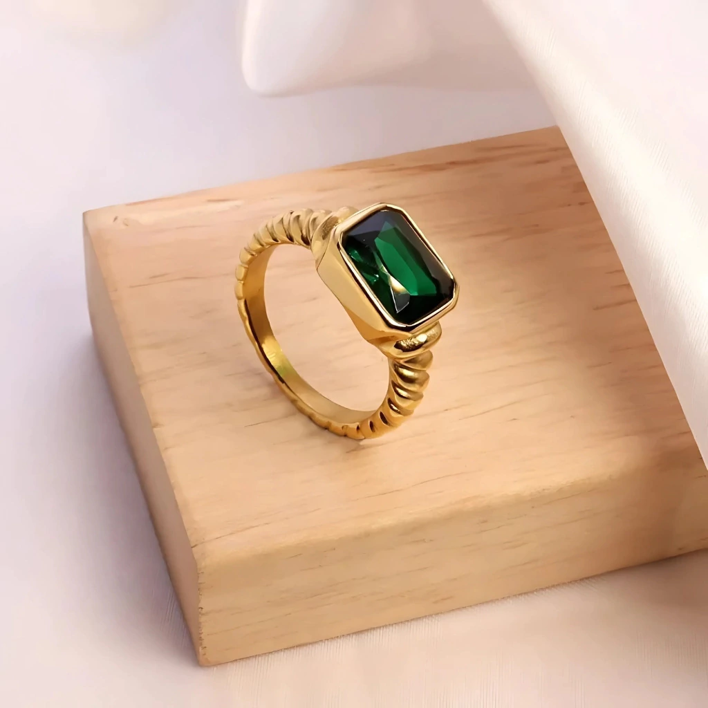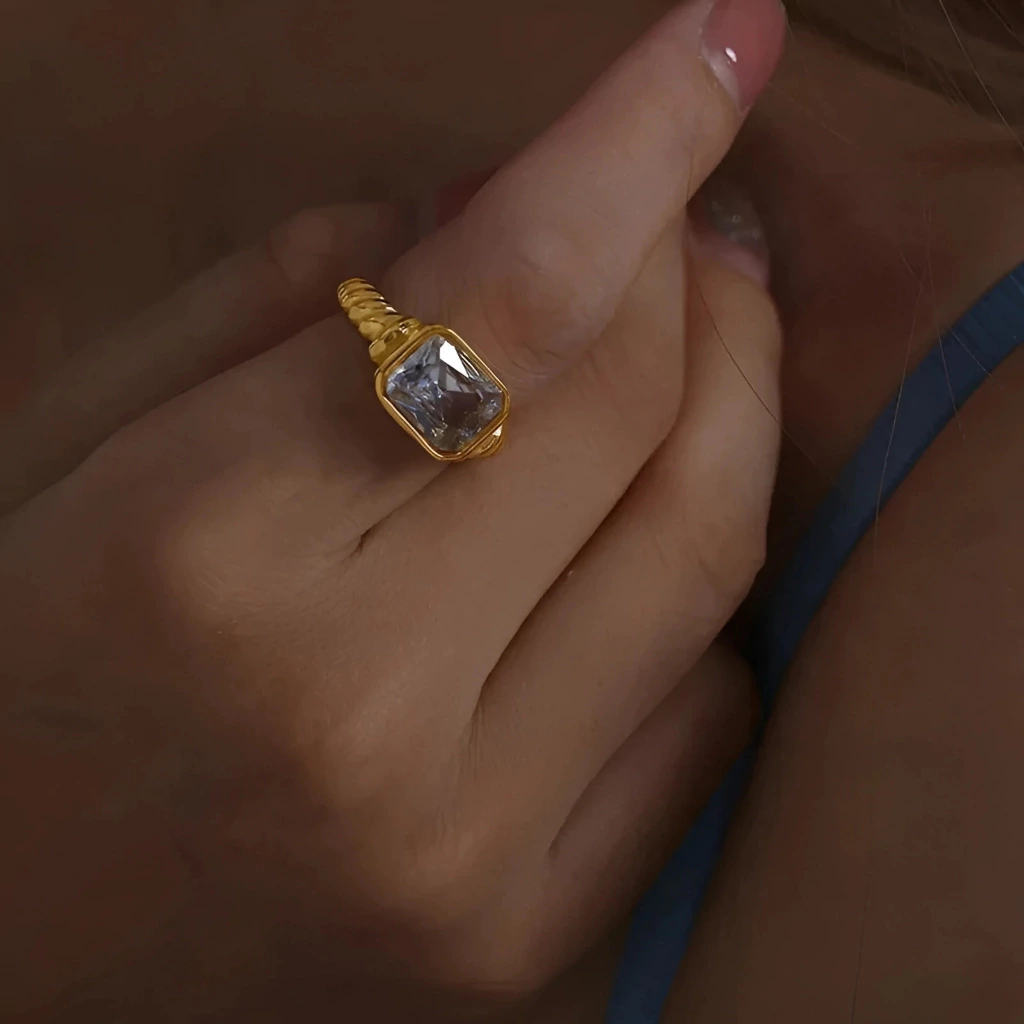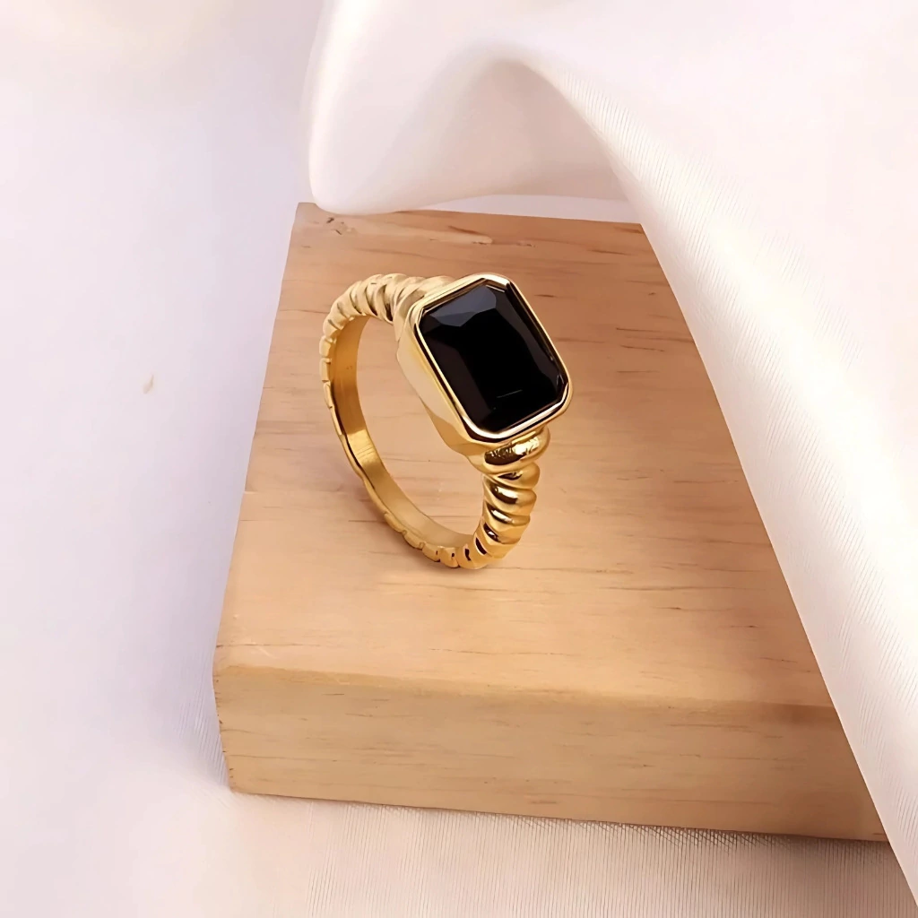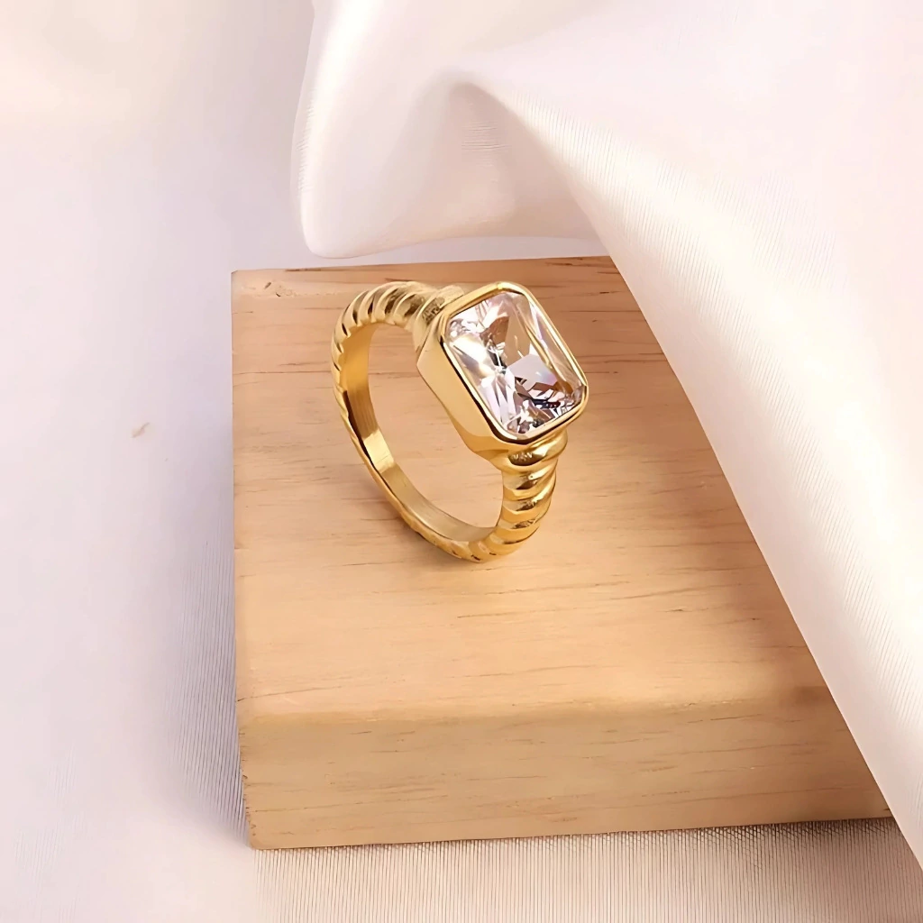 O Anel Ouro com Gema Retangular é mais que uma joia: é um verdadeiro símbolo de elegância e poder pessoal. No centro, uma zircônia cúbica lapidada em formato retangular, com 1,2 cm, brilha com intensidade e sofisticação, refletindo luz e charme a cada movimento. O revestimento em Ouro 18K confere um acabamento luxuoso, transformando gestos simples em declarações de presença e estilo incomparáveis.