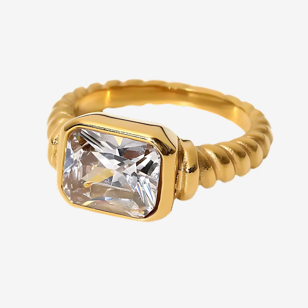 Pedra Central: Zircônia cúbica lapidada (1,2 cm, formato retangular)