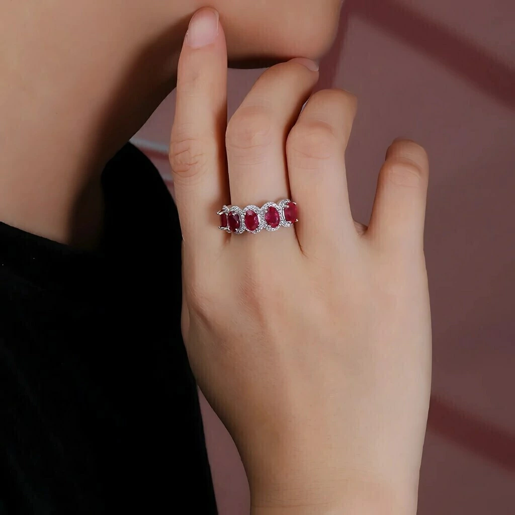 Produzido em prata de lei 925 hipoalergênica com acabamento polido impecável e aproximadamente 3,53g, apresenta rubi oval de 4×6mm emoldurado por zircônias cúbicas que realçam seu fulgor. Mais que uma joia, é símbolo de força e sofisticação para expressar intensidade em todos os momentos.