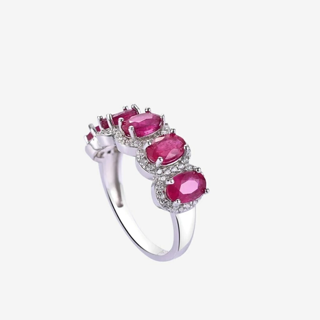 Pedra Central: Rubi natural oval 4×6mm (preenchido), pedra preciosa de origem nobre.