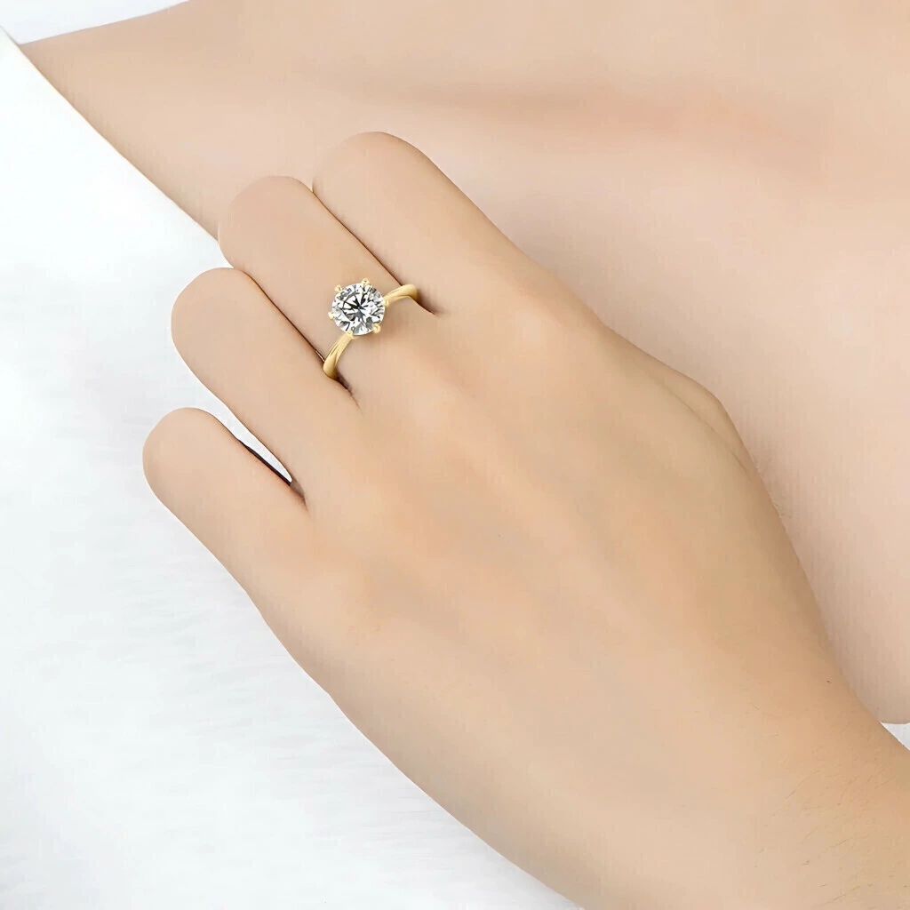 Com um design que atravessa gerações, este anel solitário é a união perfeita entre tradição e brilho moderno. Feito em prata 925 e banhado a ouro 18K, ele ganha um toque luxuoso com a pedra central de Moissanite conhecida por seu brilho excepcional, superior ao do diamante.