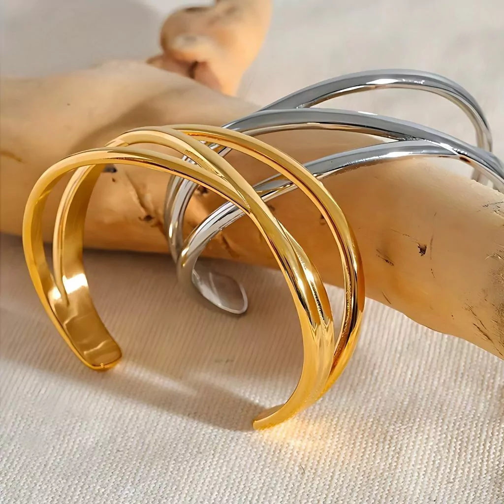 A Pulseira Interlace Dourada é uma verdadeira obra de arte que mistura elegância e modernidade com um design entrelaçado único. Banhada em ouro 18K de alta densidade, ela combina formas geométricas delicadas com o brilho do ouro, criando uma peça que exala sofisticação e versatilidade. Ideal para quem busca uma joia que se destaque sem perder a delicadeza.