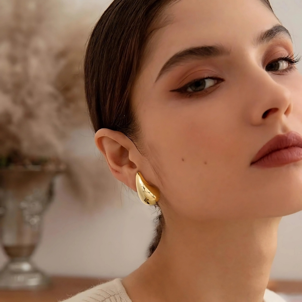 O Brinco Gota Esculpida é uma celebração da beleza em sua forma mais pura. Produzido em prata 925, com banho de ouro 18K via tecnologia PVD, apresenta design orgânico e traços fluidos, com silhueta levemente alongada que remete a uma gota d’água, simbolizando leveza e movimento. O acabamento polido e espelhado captura a luz suavemente, valorizando o contorno do rosto com sofisticação discreta.