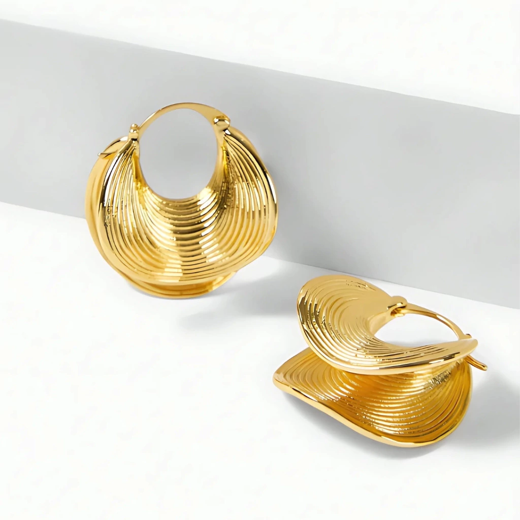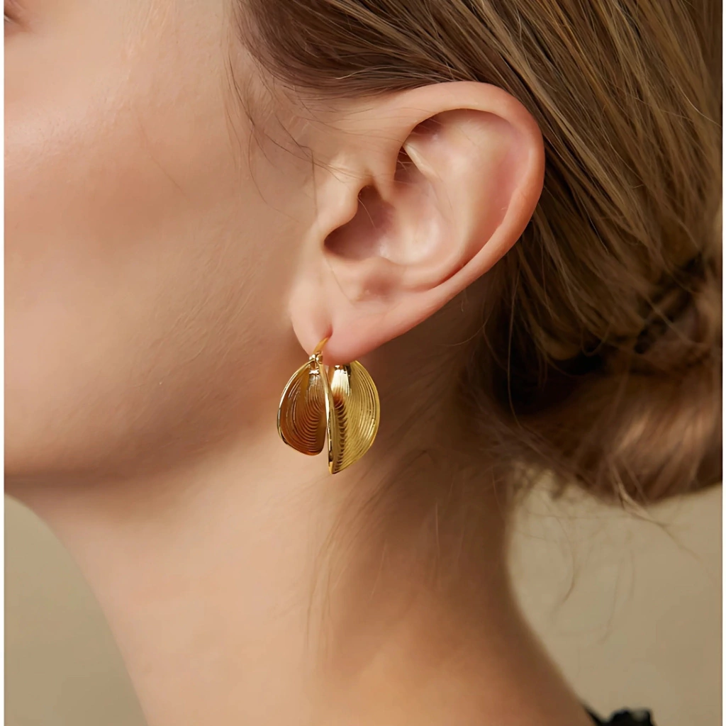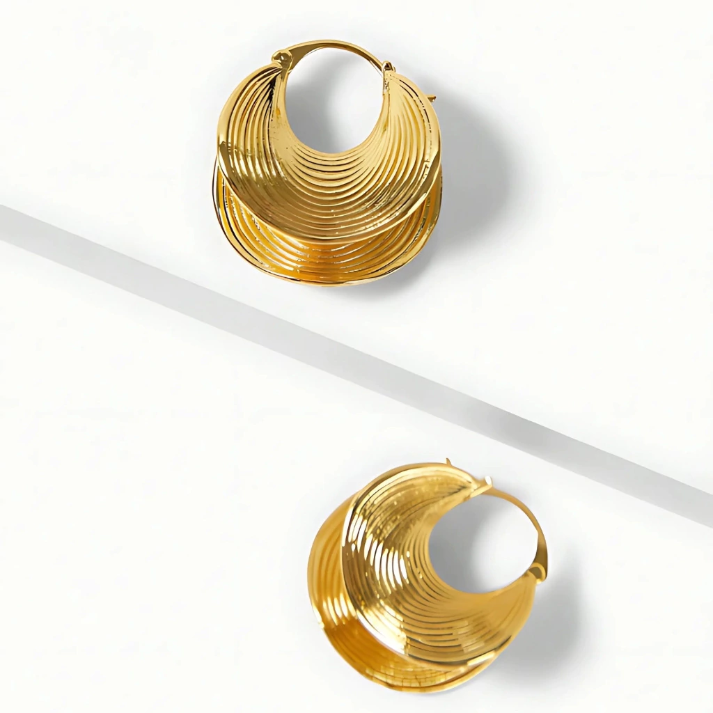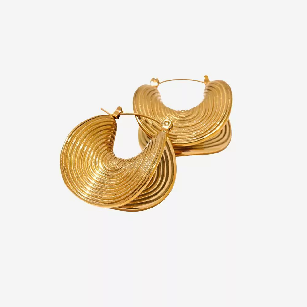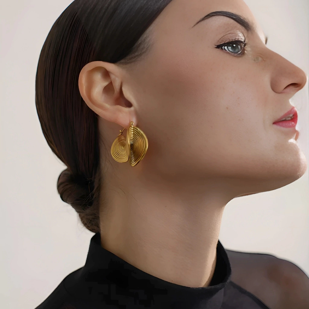 O Brinco Harmonia Dourada celebra a sofisticação escultural em design orgânico e hipnotizante. Camadas concêntricas em relevo formam uma espiral fluida que captura luz de múltiplos ângulos, criando profundidade e movimento a cada gesto. A textura linear meticulosamente trabalhada confere dimensão arquitetônica à peça, equilibrando presença marcante com elegância atemporal. Banhado a ouro 18K de alta densidade e acabamento polido impecável, oferece brilho luminoso e durabilidade excepcional. Design versátil que transita com naturalidade entre o casual sofisticado e ocasiões formais.