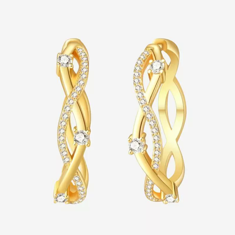 O Brinco Liss celebra a elegância do minimalismo em design entrelaçado e orgânico. Suas linhas fluidas formam uma trama delicada pontilhada por zircônias cristalinas, criando movimento e luminosidade discreta.