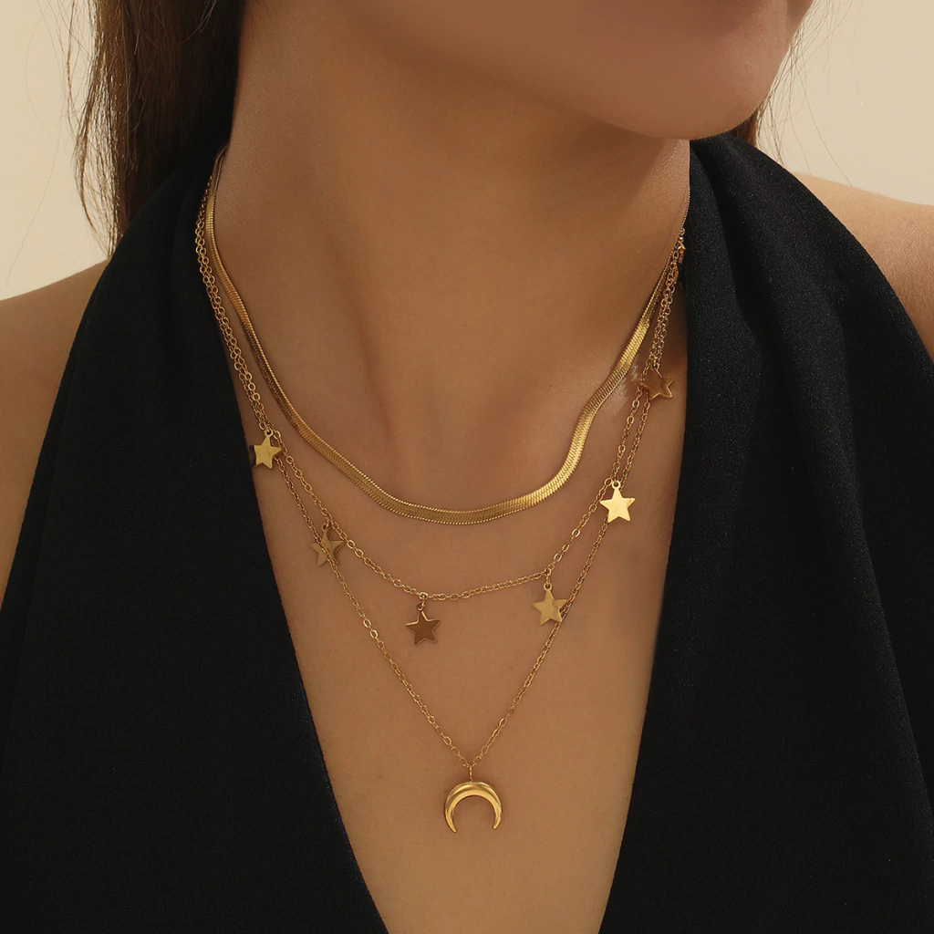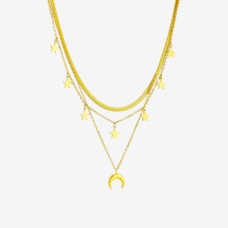 O Colar Constelação Lunar é uma peça que captura a beleza e o mistério do universo. Com um design inspirado nas estrelas e na lua, este colar traz um toque celestial ao seu visual. Banhado a ouro 18K, ele combina sofisticação e brilho, refletindo a luz de maneira deslumbrante. Perfeito para quem deseja uma joia delicada e cheia de significado, este colar é ideal para complementar qualquer look com um toque de elegância cósmica.