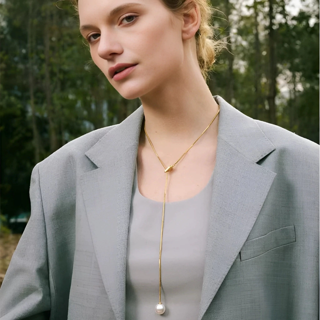 Este colar longo une a elegância atemporal da pérola a um design contemporâneo e delicado. Banhado em ouro 18K, proporciona brilho luxuoso e acabamento sofisticado, enquanto o pingente de pérola realça feminilidade e suavidade. Uma peça versátil, perfeita para complementar tanto looks casuais quanto ocasiões especiais, adicionando charme e sofisticação a qualquer estilo.