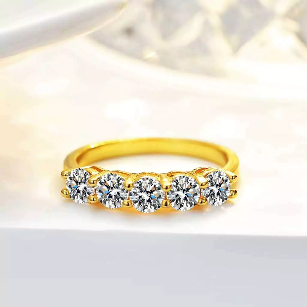 A Meia Aliança Eternity de Moissanite em Prata lei - Dourada é um símbolo de sofisticação e eternidade, perfeita para celebrar momentos especiais. Esta joia apresenta uma fileira de pedras de Moissanite, cuidadosamente cravadas, que refletem uma luz de maneira única, criando um brilho deslumbrante. Esta joia em prata de lei 925 e banhada em ouro amarelo 18K de alta densidade, é uma peça que combina durabilidade com um toque de luxo. Ideal para alianças complementares, seja usado como anel de compromisso ou para adicionar alterações ao seu dia a dia.