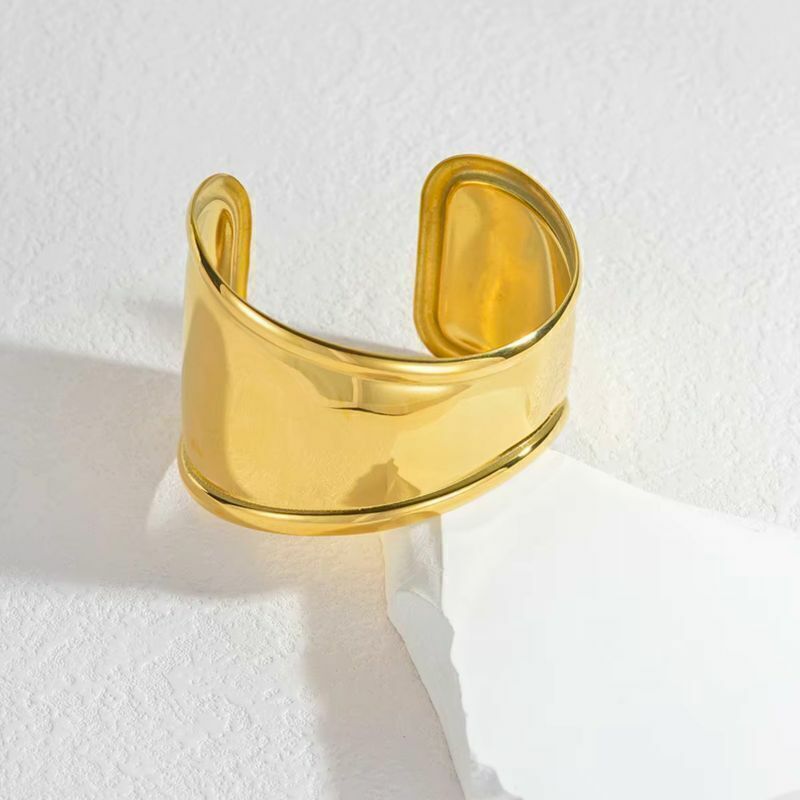 A Pulseira Dourada traduz elegância e presença em um design imponente e atemporal. Fabricada em aço inoxidável 316L e banhada em ouro 18K, ela se destaca pela sua superfície polida e linhas amplas que capturam a luz com intensidade e requinte. Uma peça que combina resistência, beleza e estilo, perfeita para quem deseja adicionar um toque de luxo e poder ao visual.