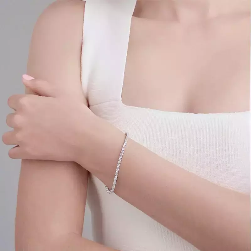 Feita em prata 925 banhada a ouro branco 18K, essa pulseira combina luxo e resistência. Dependendo do tamanho escolhido, ela vem cravejada com mais de 35 zircônias, tornando-se um acessório indispensável para quem valoriza a elegância nos mínimos detalhes.