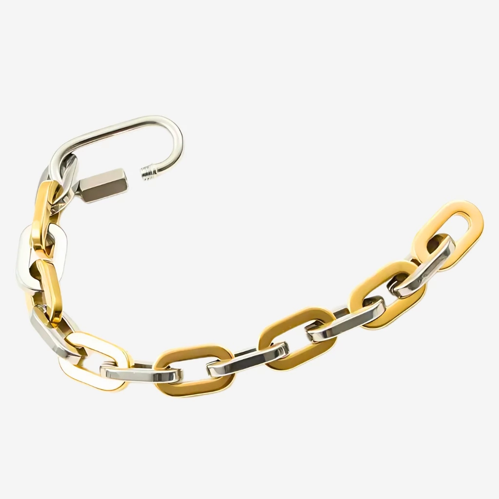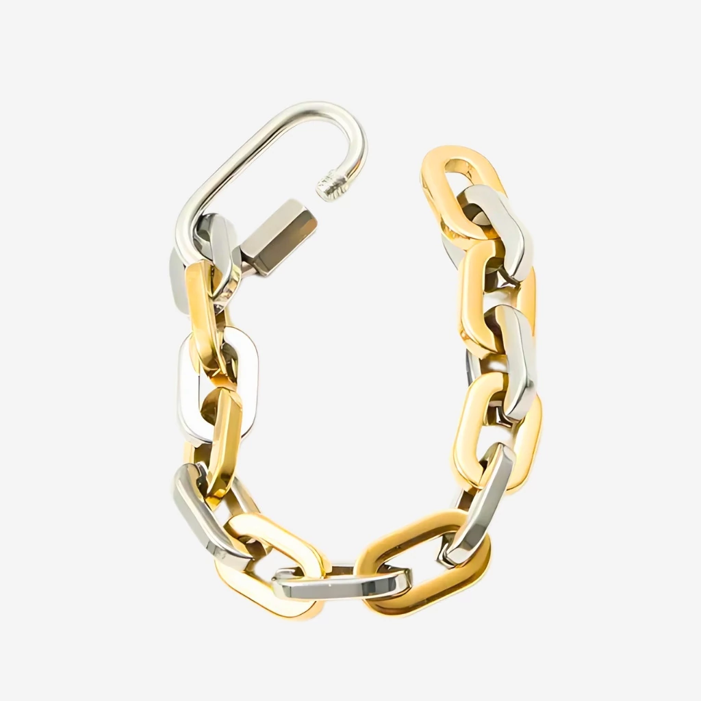 Moderna e profundamente simbólica, a Pulseira Elos Entrelaçados celebra a união perfeita entre o brilho dourado e a elegância atemporal do aço inoxidável superior banhado a ouro 18K de alta densidade. Cada elo amplo e entrelaçado foi concebido para criar uma composição visual imponente, refletindo precisão e cuidado joalheiro, destinada a quem entende que o verdadeiro luxo está nos detalhes e na autenticidade do design.
