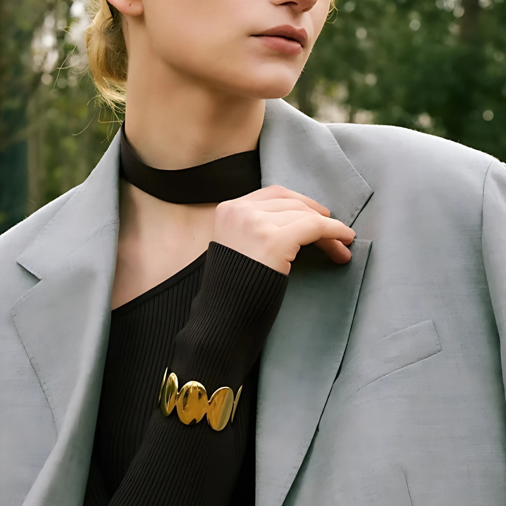 A Pulseira Escultura Dourada é ideal para quem busca um acessório com personalidade marcante e acabamento refinado. Versátil e imponente, ela complementa tanto looks elegantes quanto composições modernas e minimalistas.