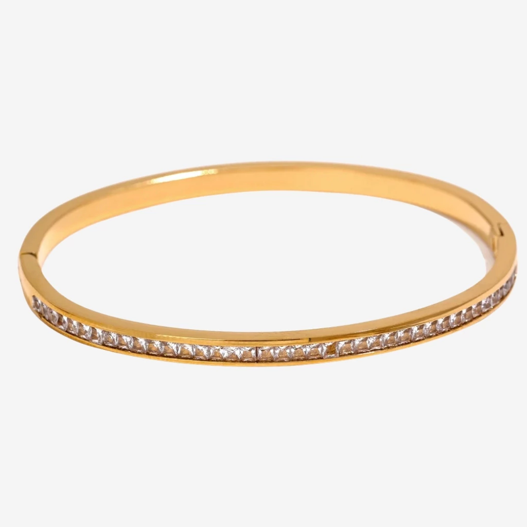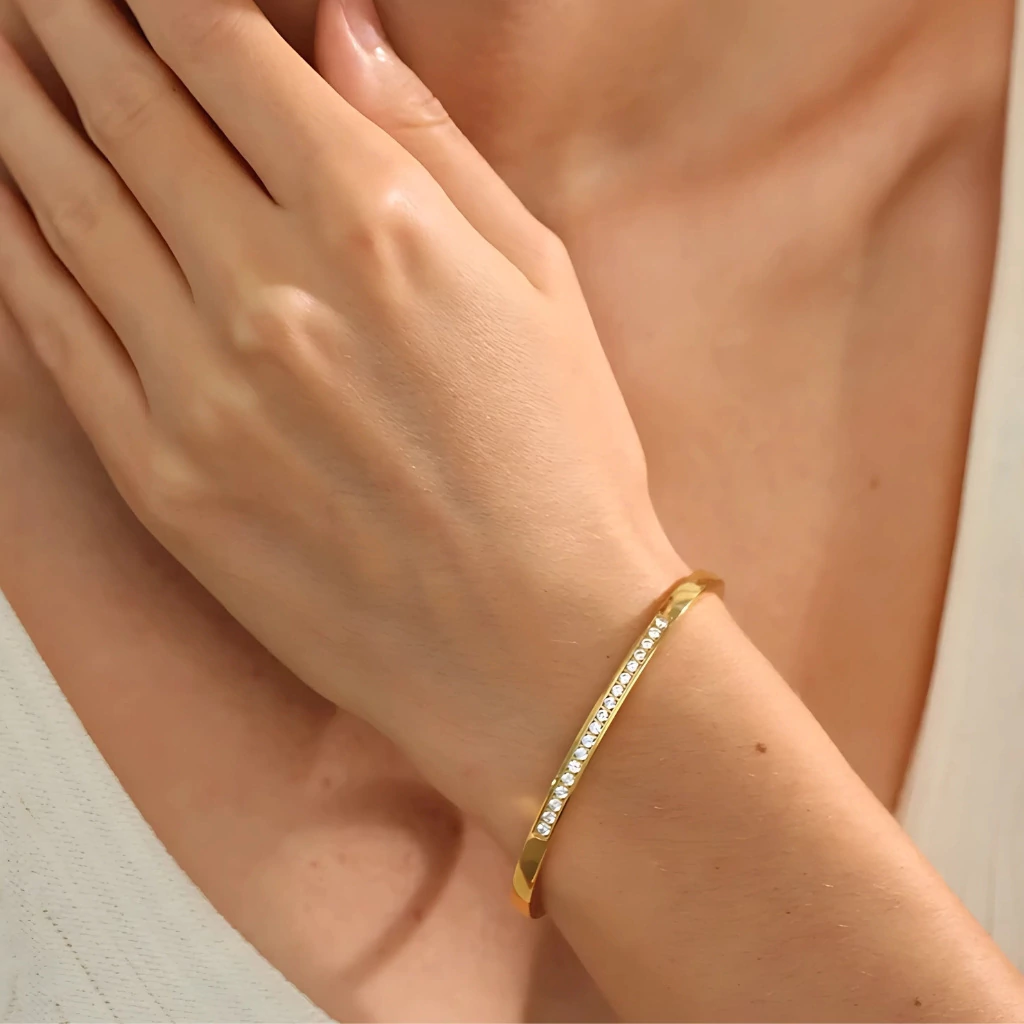A Pulseira Lumière Slim é a essência do luxo discreto. Com apenas 4 mm de largura, cada detalhe reflete sofisticação: as zircônias incrustadas capturam a luz com sutileza, enquanto joia banhada a ouro 18K de alta densidade oferece durabilidade e brilho eterno. Inspirada na luz, esta peça envolve o pulso com leveza, transformando gestos cotidianos em momentos de elegância e glamour. É o acessório perfeito para realçar sua presença, seja no dia a dia ou em ocasiões especiais.