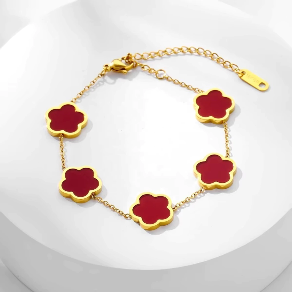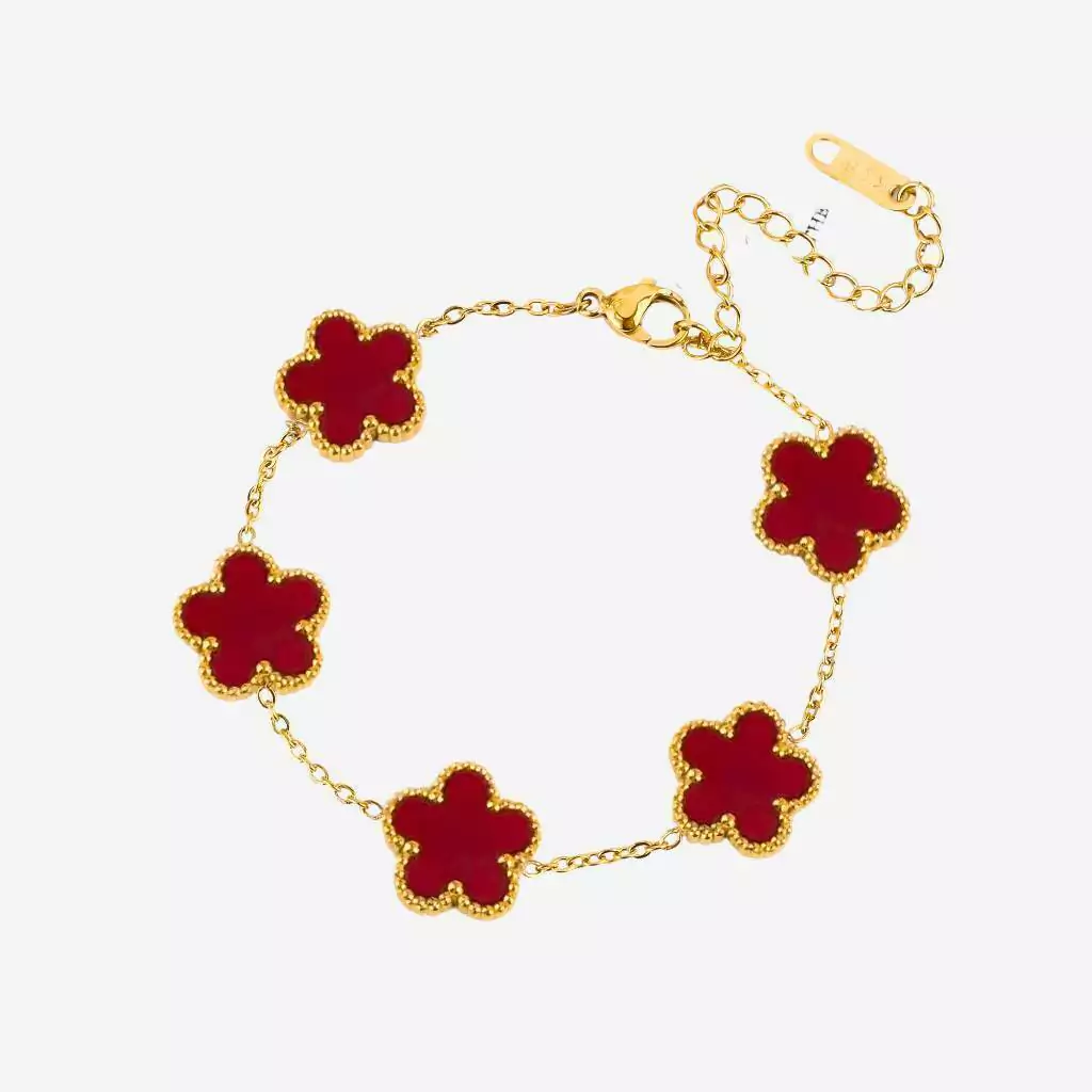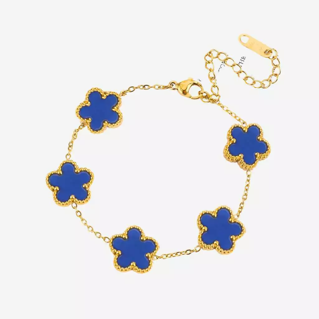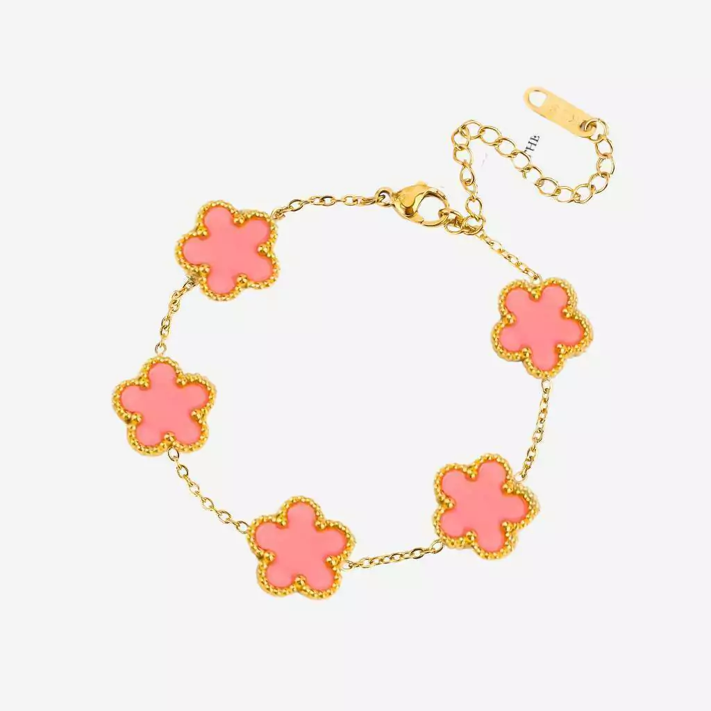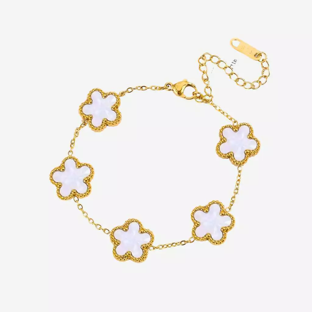 A Pulseira Pétala celebra a delicadeza da natureza em design atemporal. Suas cinco flores em madrepérola branca com contornos em ouro criam um jogo de luz suave e feminino, perfeito para quem busca elegância discreta com toque contemporâneo. O acabamento polido e o brilho luminoso valorizam o pulso com sofisticação natural.