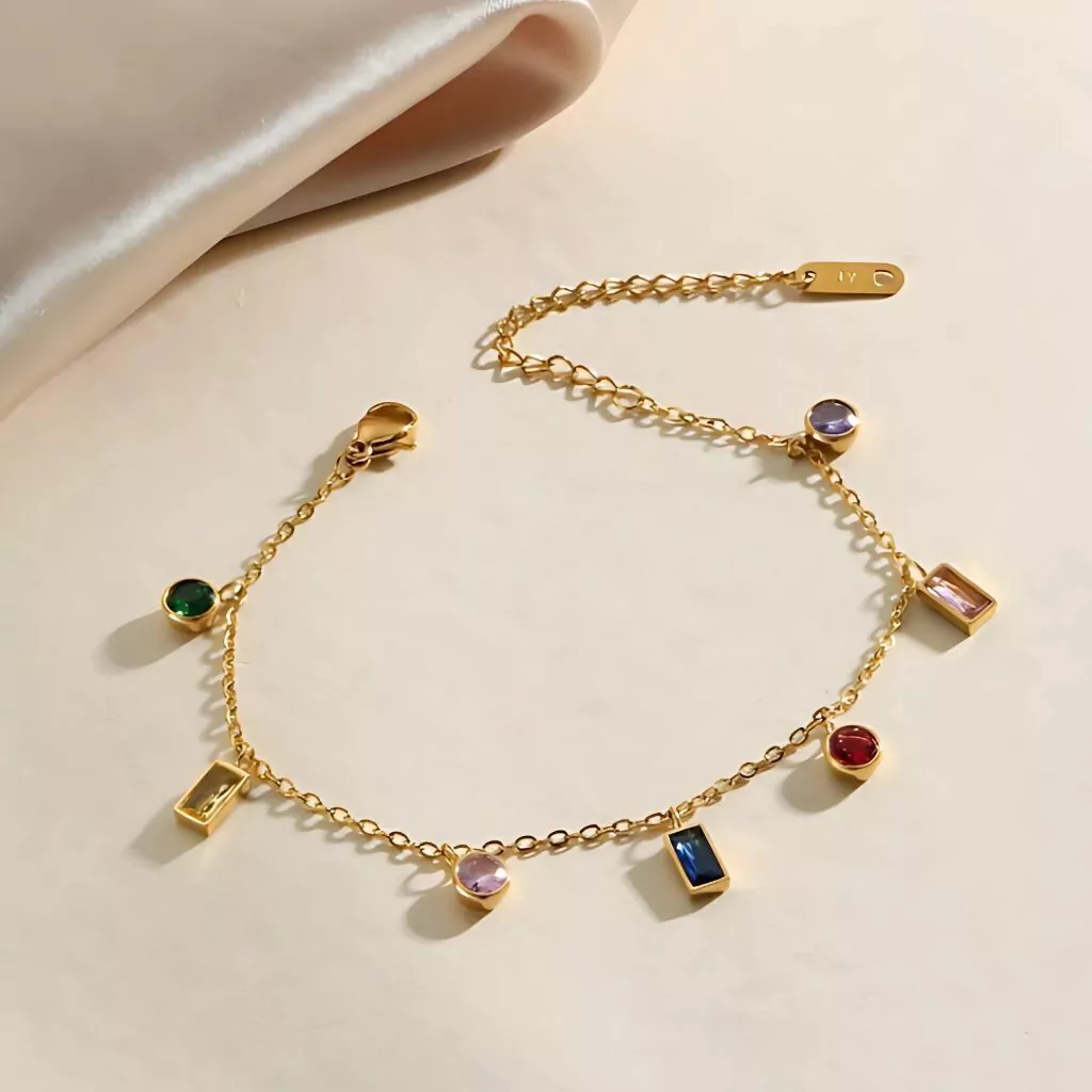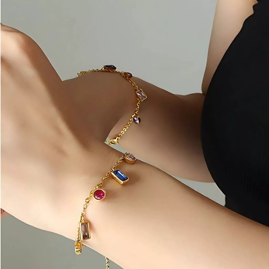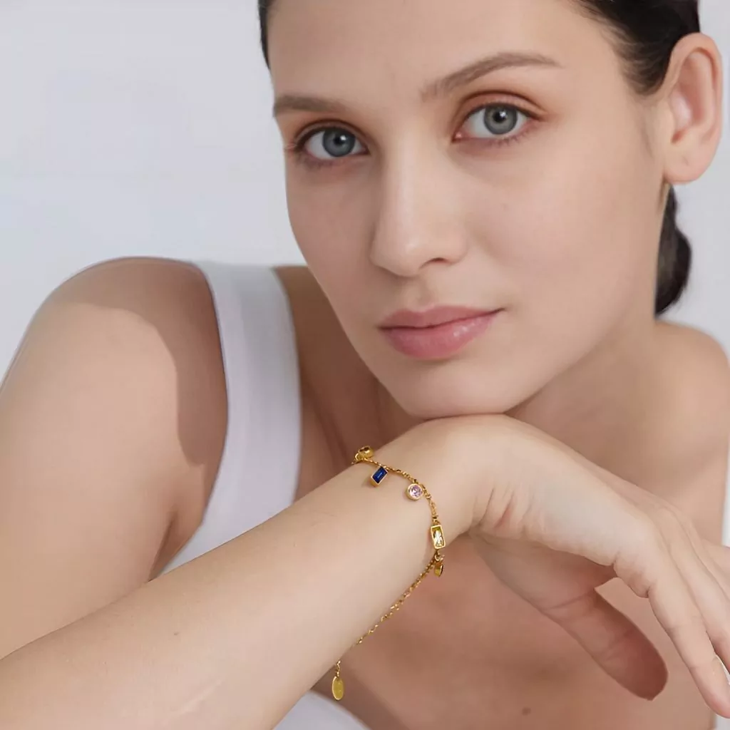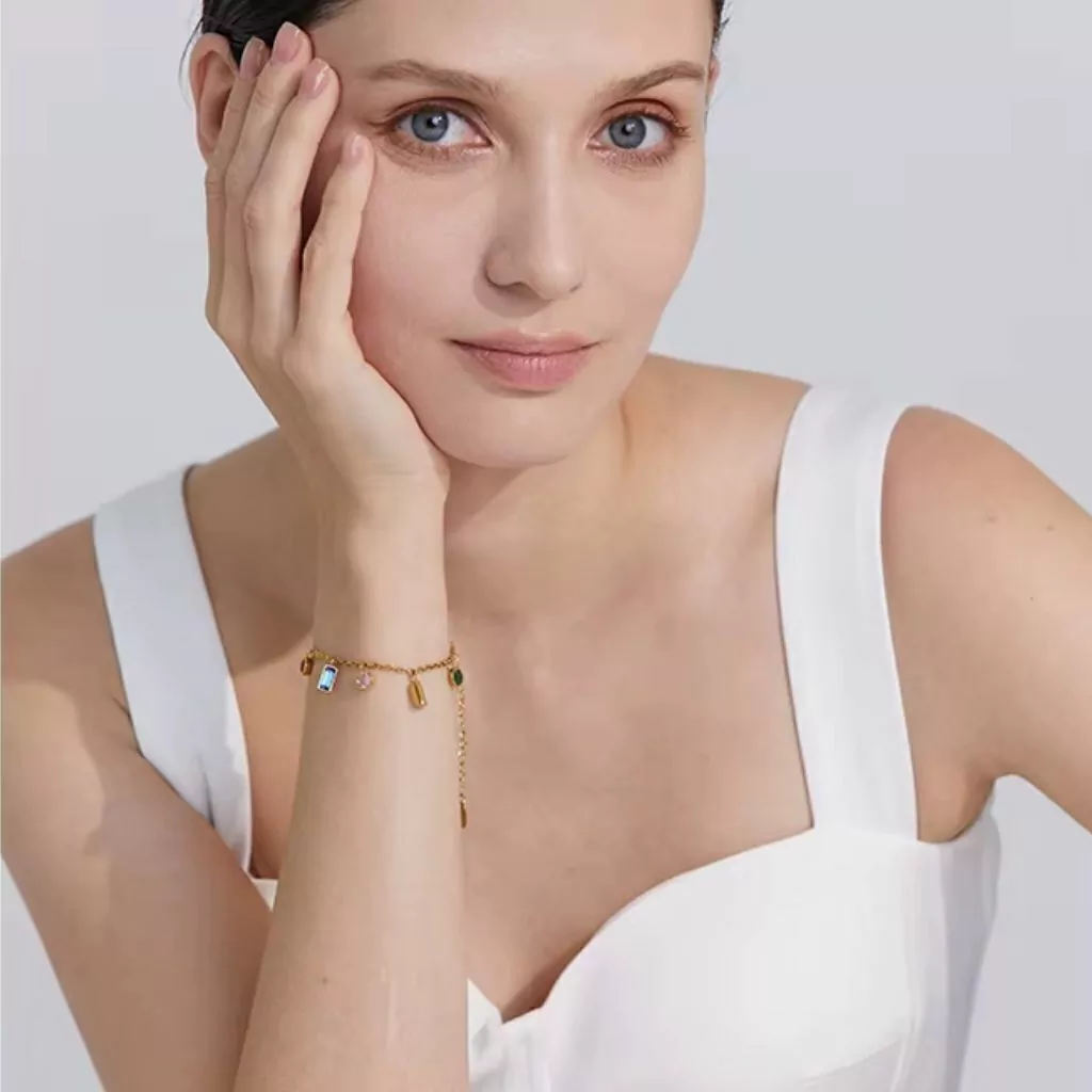 A Pulseira Tesouros do Mar é uma verdadeira homenagem ao encanto das águas e à vibrante paleta de cores do oceano. Com delicados pingentes marinhos cravejados de zircônias cúbicas coloridas, ela transmite frescor, alegria e sofisticação. Seu banho em ouro 18K proporciona um brilho intenso que destaca cada pedra, tornando-a uma joia única — perfeita para quem deseja carregar consigo a beleza e a leveza do mar.